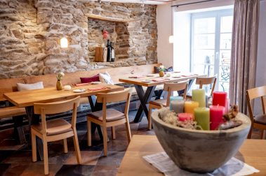 In unserem Gasthaus können bis zu 70 Personen vortrefflich speisen oder an festlich eingedeckten Tischen dinieren.